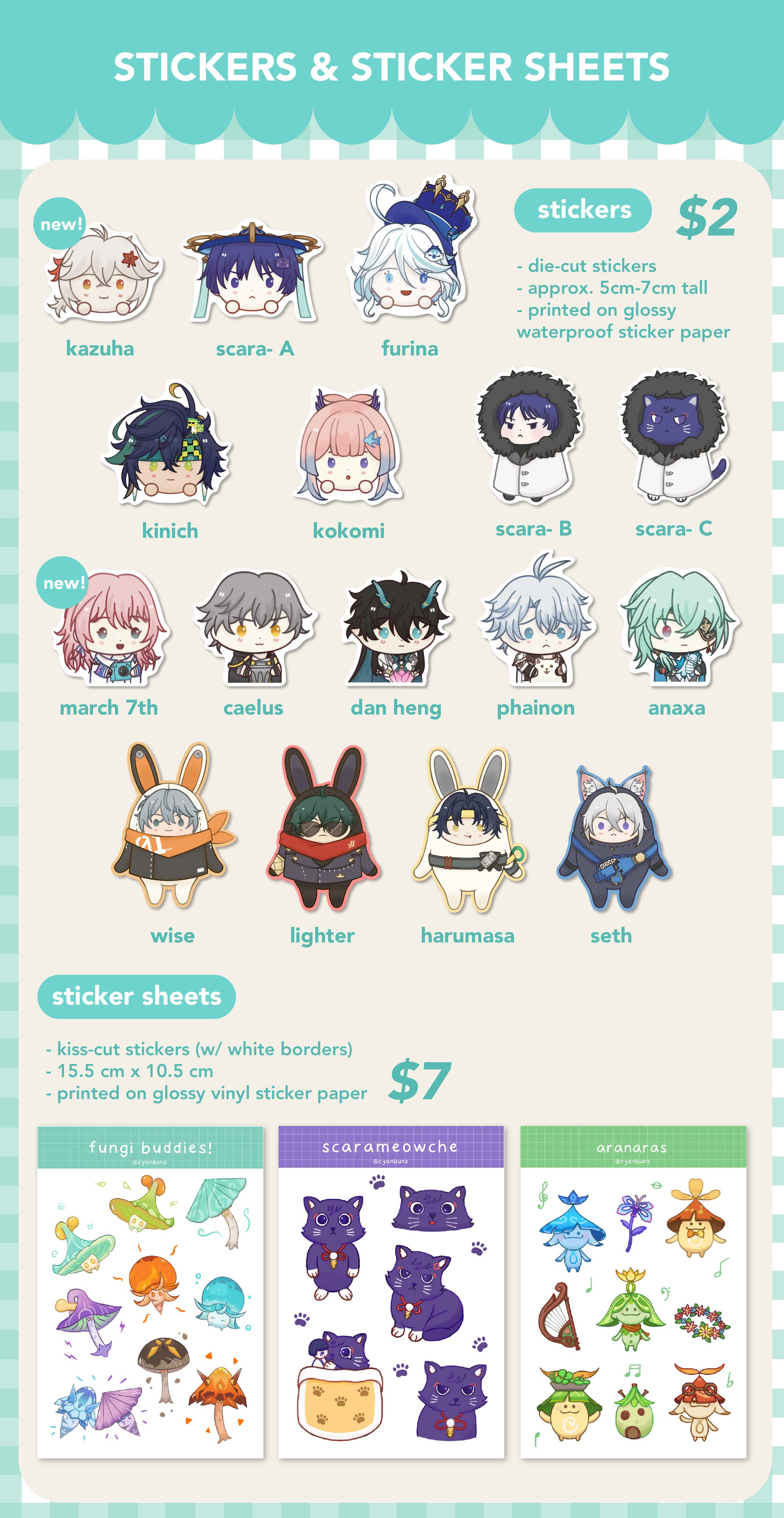 Die-cut Stickers ⟡ Approx. 5cm-7cm tall ⟡ Printed on glossy waterproof sticker paper